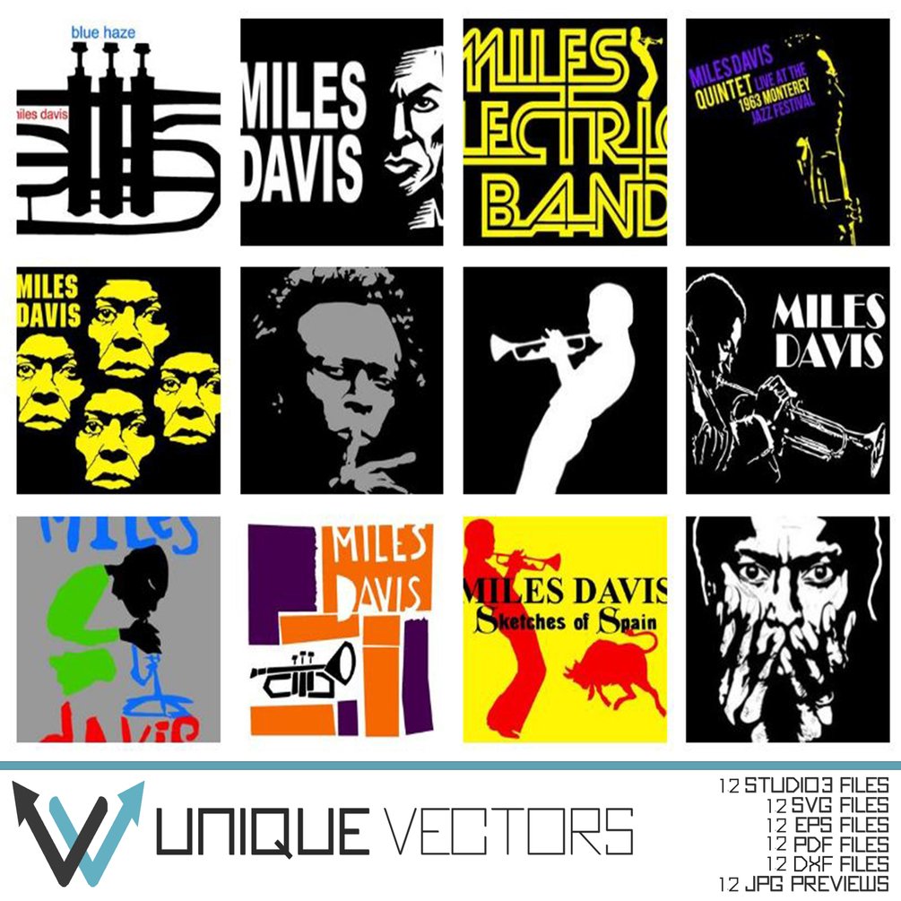 Miles Davis 12 Vector Pack (SVG, EPS, DXF, PDF, STUDIO3)